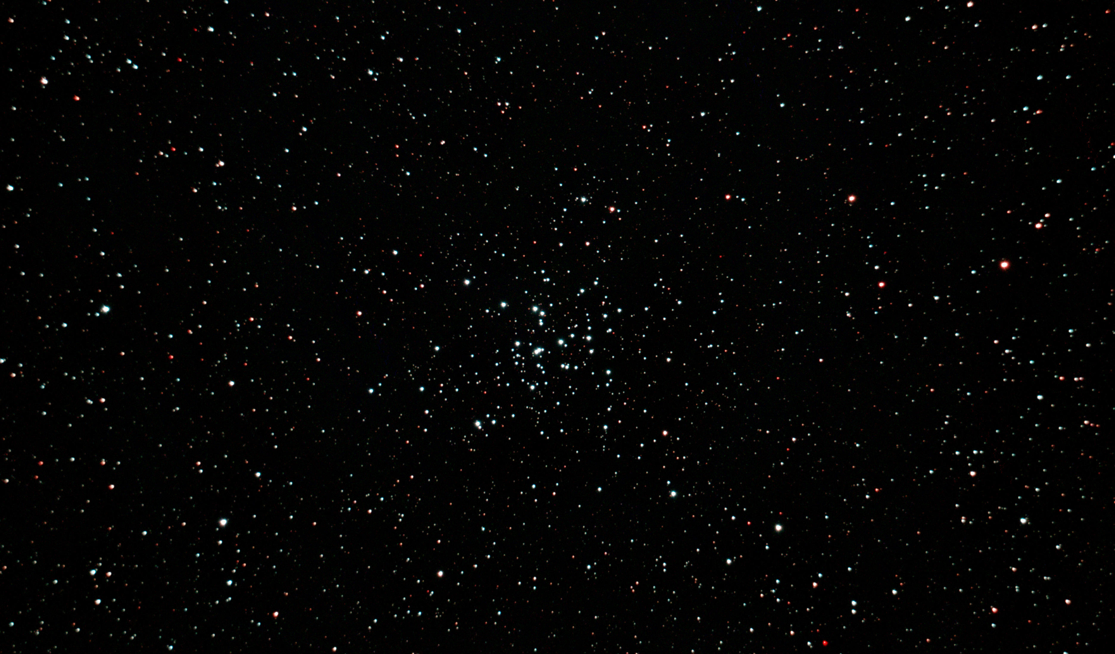 am 23.2.2014, 250/1016 SN-Teleskop, 27 Bilder, je 140s belichtet auf Canon EOS 1100Da bei 800 ASA Sternbild Krebs 25' 7m 2700 ly offener Sternhaufen |