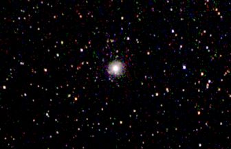 am 1.8.2014 durch 250/1016mm Reflektor mit CLS-Filter, 6 Bilder bei 6400 ASA je 2s - 20s auf Canon EOS 1100Da Sternbild Wassermann 1,4' 8,9m unterschiedlich Asterismus (zufällige Konstellation von Sternen unterschiedlicher Entfernung) |