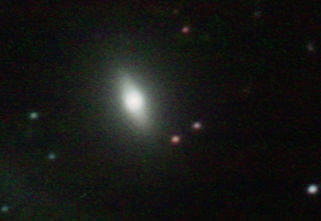 am 27.10.2014, 80 Aufnahmen mit Canon EOS 1100Da je 145s bei 800 ASA belichtet im Primärfokus des 250/1016 SN Sternbild Perseus 0,9'x0,7' 13,3m ca. 240 Millionen ly elliptische Galaxie, Teil des Galaxienhaufens Abell 426 |