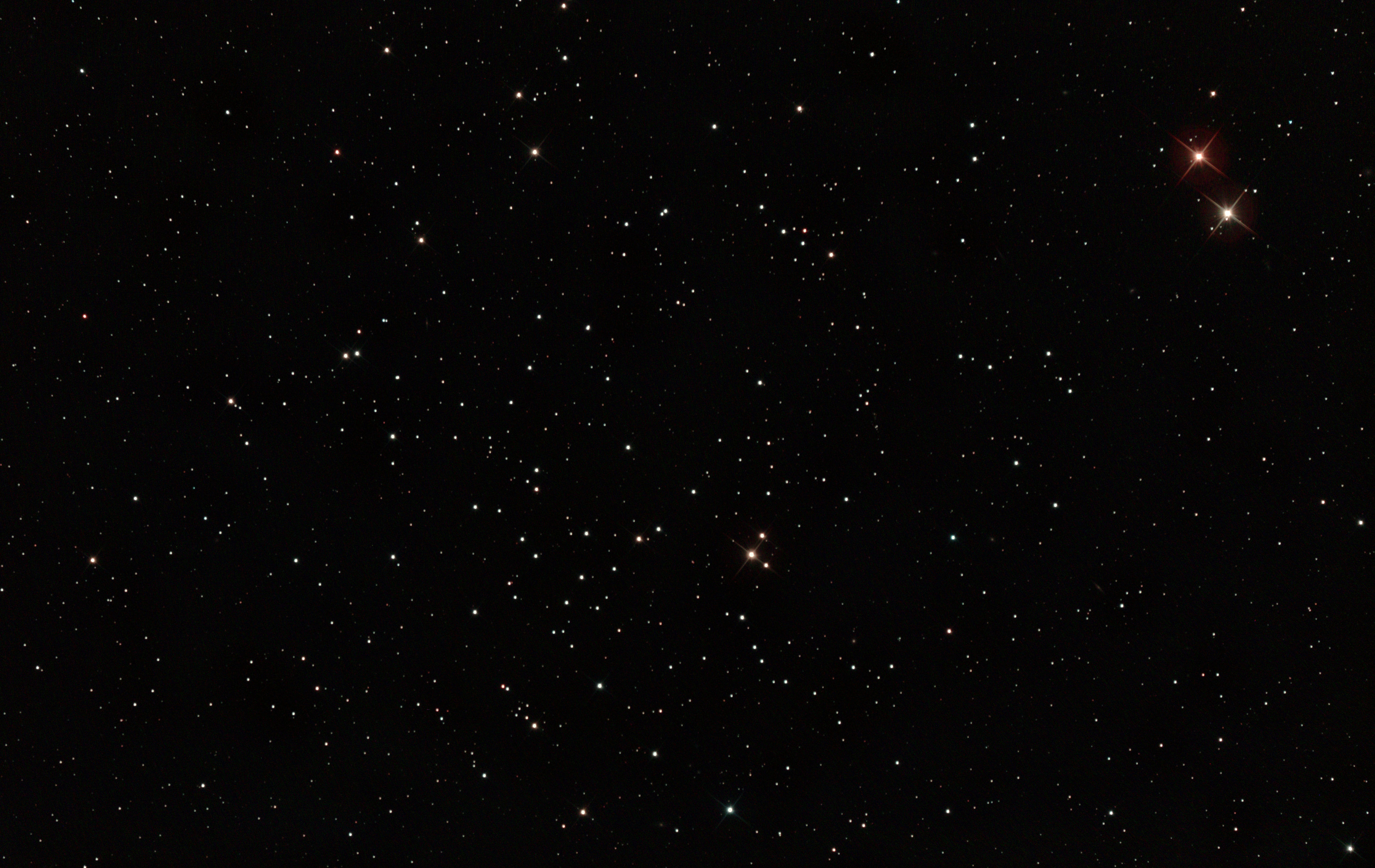 am 27.10.2014, 80 Aufnahmen mit Canon EOS 1100Da je 145s bei 800 ASA belichtet im Primärfokus des 250/1016 SN Sternbild Perseus 0,9'x1,1' 13,1m ca. 240 Millionen ly elliptische Galaxie, Teil des Galaxienhaufens Abell 426 |